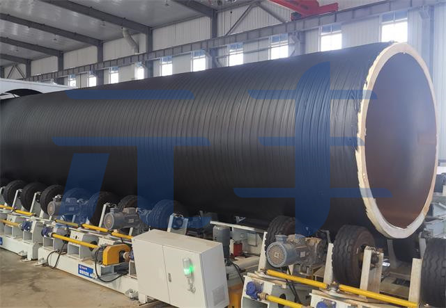 硬質聚氨酯噴涂聚乙烯纏繞預制直埋保溫管采用聚氨酯噴涂設備將混合均勾的聚氨酯原料連續噴涂到鋼管外表面,形成聚氨酯保溫層;保溫層成型后使用擠出設備將熔融的聚乙烯片材連續纏繞到其外表面,形成連續密實的聚乙烯外護層的工藝方法制作...