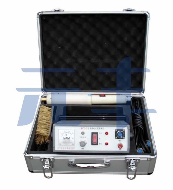 電火花檢漏儀為高壓儀器,是用于檢測鋼套鋼直埋蒸汽管外防腐涂層質量的專用儀器,使用本儀器可以對不同厚度的環氧煤瀝青、3PE、聚脲和玻璃鋼等涂層,進行質量檢測。當防腐層有質量問題時,如出現針孔、氣泡、裂隙和裂紋,儀器將發出明亮的電火花,同時聲光報警,從而達到對防腐層檢測之目的。